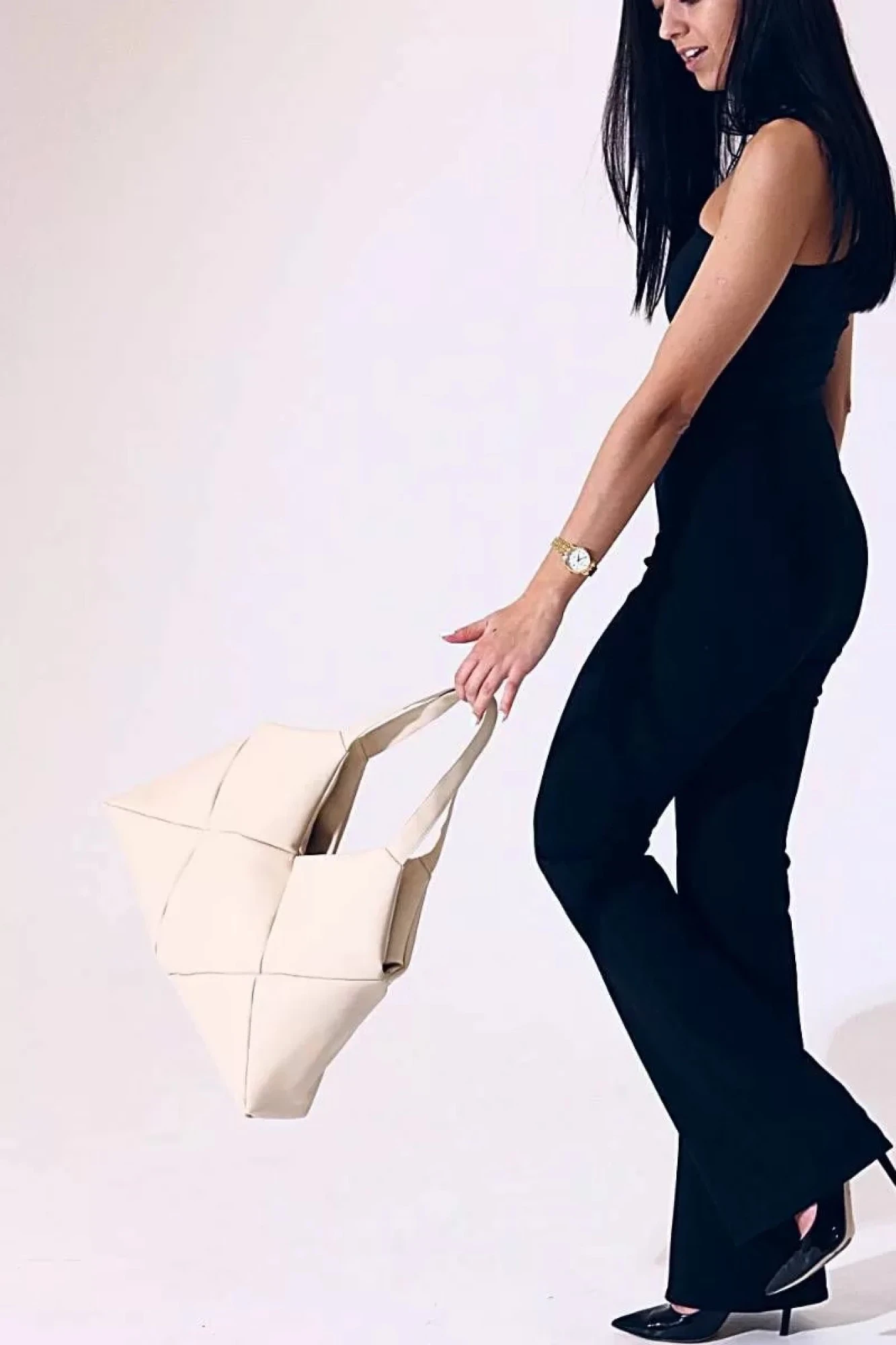 Сумка выполнена из качественной экокожи.