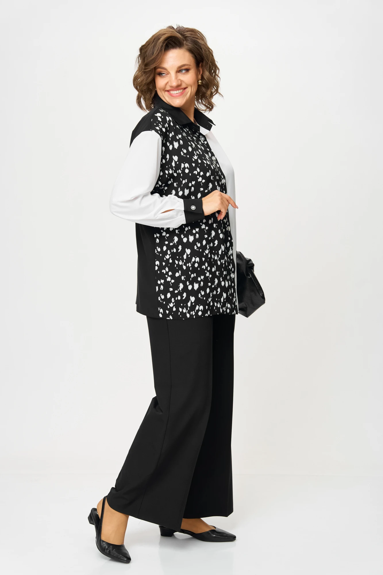 Оригинальная женская блузка из трех видов ткани станет изюминкой вашего гардероба. Блузка прямого силуэта со спущенным плечом. Рукав на манжете. Застежка – планка на петли и пуговицы. Воротник на отрезной стойке. С одной стороны полочки идет накладной карман с логотипом фирмы. Такой женский офисный стиль можно носить, сочетая с другими вещами гардероба, создавая новые образы. Этот универсальная стильная блузка есть в больших размерах. Она отлично подойдет зимой и летом для офиса, для праздника, на каждый день, для вечеринки и корпоративы, для прогулок, для отдыха, для работы, на выпускной, на день рождения для высоких и для невысоких девушек и женщин. Блузка станет любимой вещью в гардеробе и сделает Ваш образ незабываемым! В «Анастасия» Вы всегда найдете богатый выбор качественной одежды для женщин больших размеров. Длина по спинке: (48-52)-70 см, (54-58)-72см. Длина рукава с манжетой: (48-52)-55 см, (54-58)-57см