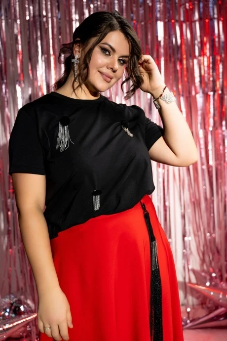 женская современная из хлопкового премиального трикотажного полотна, блузка с пристёгивающим декором .блузка с короткими рукавами, горловина с притачной бейкой.