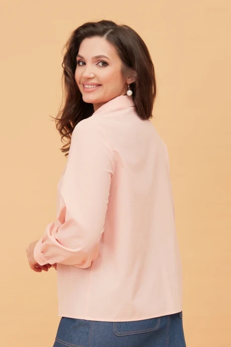 Блузка женская классическая прямого силуэта. Перед с вертикальными складками, с застёжкой в среднем шве. Рукав втачной одношовный со сборкой по низу, на притачном манжете. Воротник с декоративной завязкой и застёжкой на петлю и пуговицу.