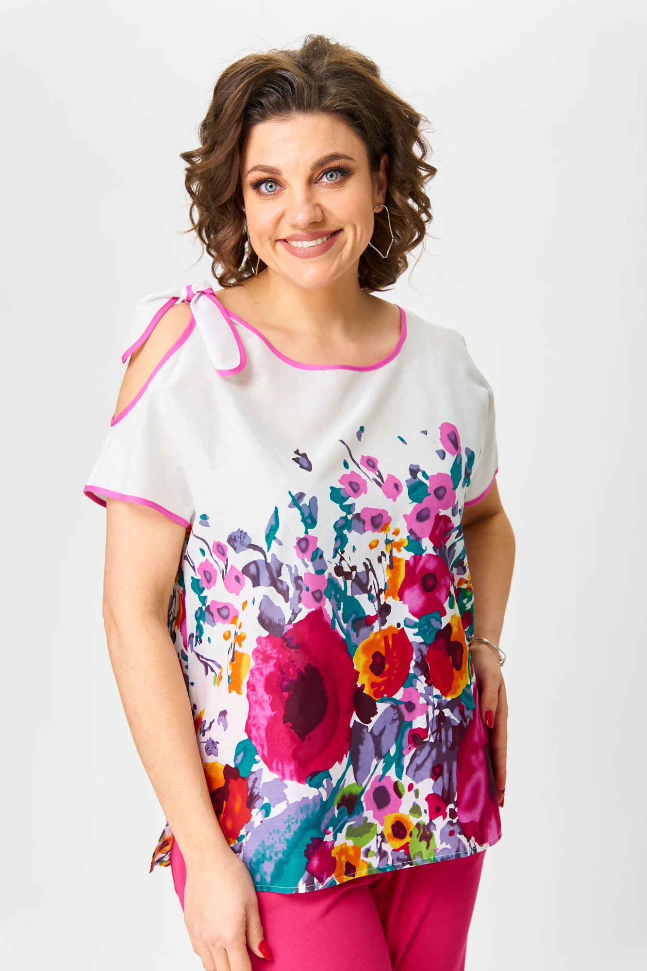 Блузка ANDINA CITY 5031-25 белый/фуксия
