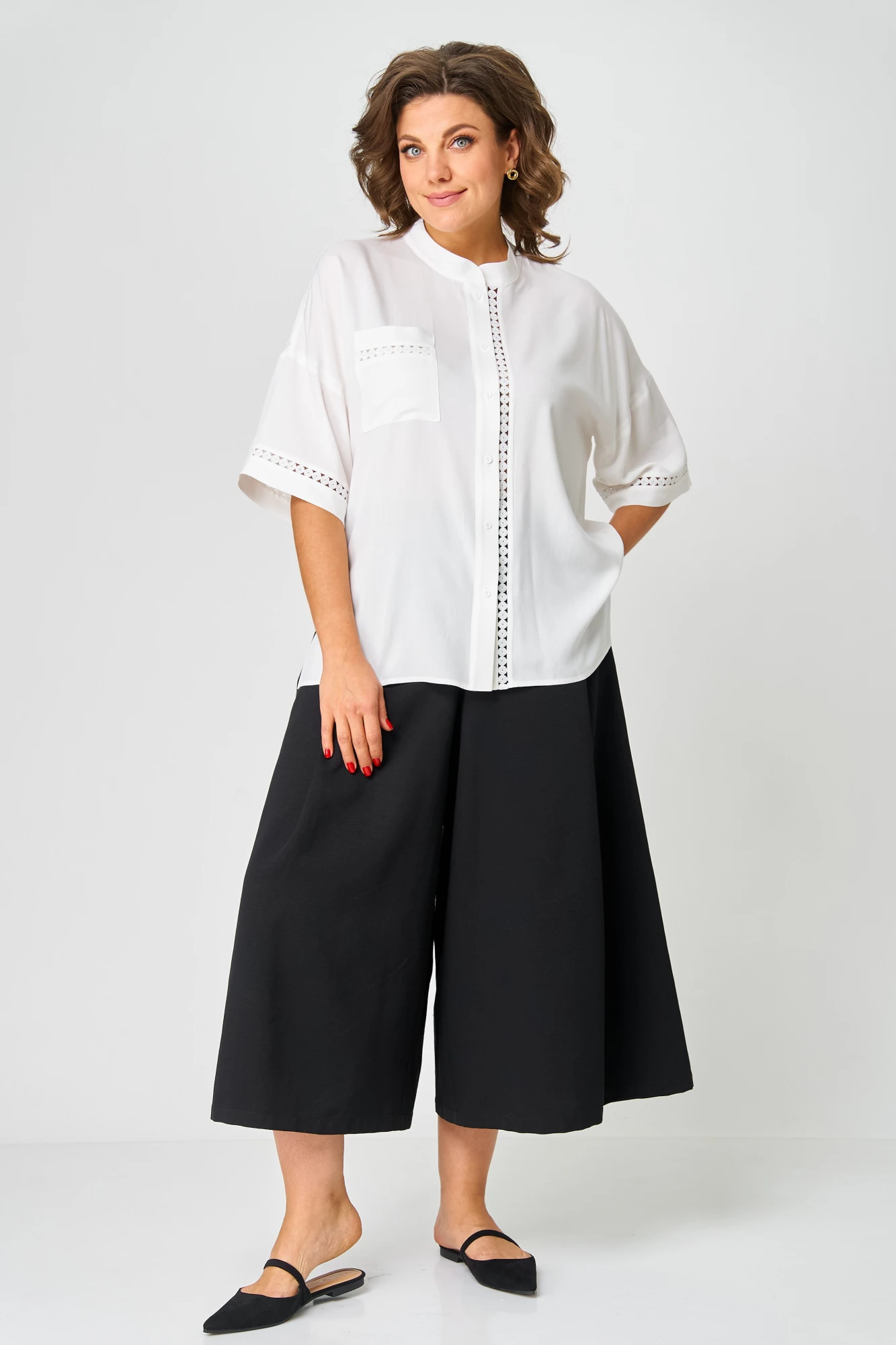 Блузка женская с кружевными вставками – это идеальный выбор для создания стильных и комфортных образов на каждый день. Изготовленная из 100% вискозы, она невероятно приятна к телу, дарит ощущение легкости и комфорта в течение всего дня. Стойка придает модели женственности и элегантности, рукава длины ¾ на спущенной пройме дают свободу движения, а свободный крой позволяет чувствовать себя комфортно и уверенно в любой ситуации. Блузка застегивается на пуговицы, что добавляет ей классический и утонченный вид.