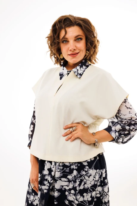 Эта блуза-жилет — идеальное сочетание стиля и комфорта! Её прямой силуэт и спущенное плечо создают мягкий и утонченный силуэт, а круглый вырез горловины подчеркивает изящество. Потайная молния по среднему шву полочки добавляет лаконичности, а резинка по бокам в области талии мягко акцентирует фигуру, создавая эффектную посадку.
