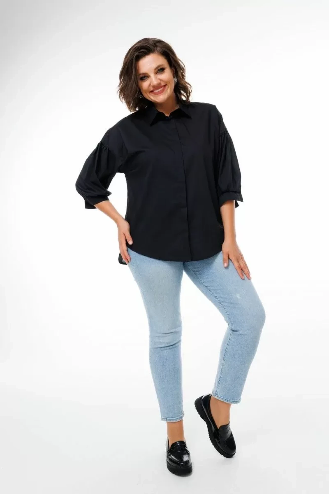 Идеально спроектированные спущенные рукава со сборкой и 3/4 рукав на манжете гарантируют свободу движения и комфорт на протяжении всего дня.
