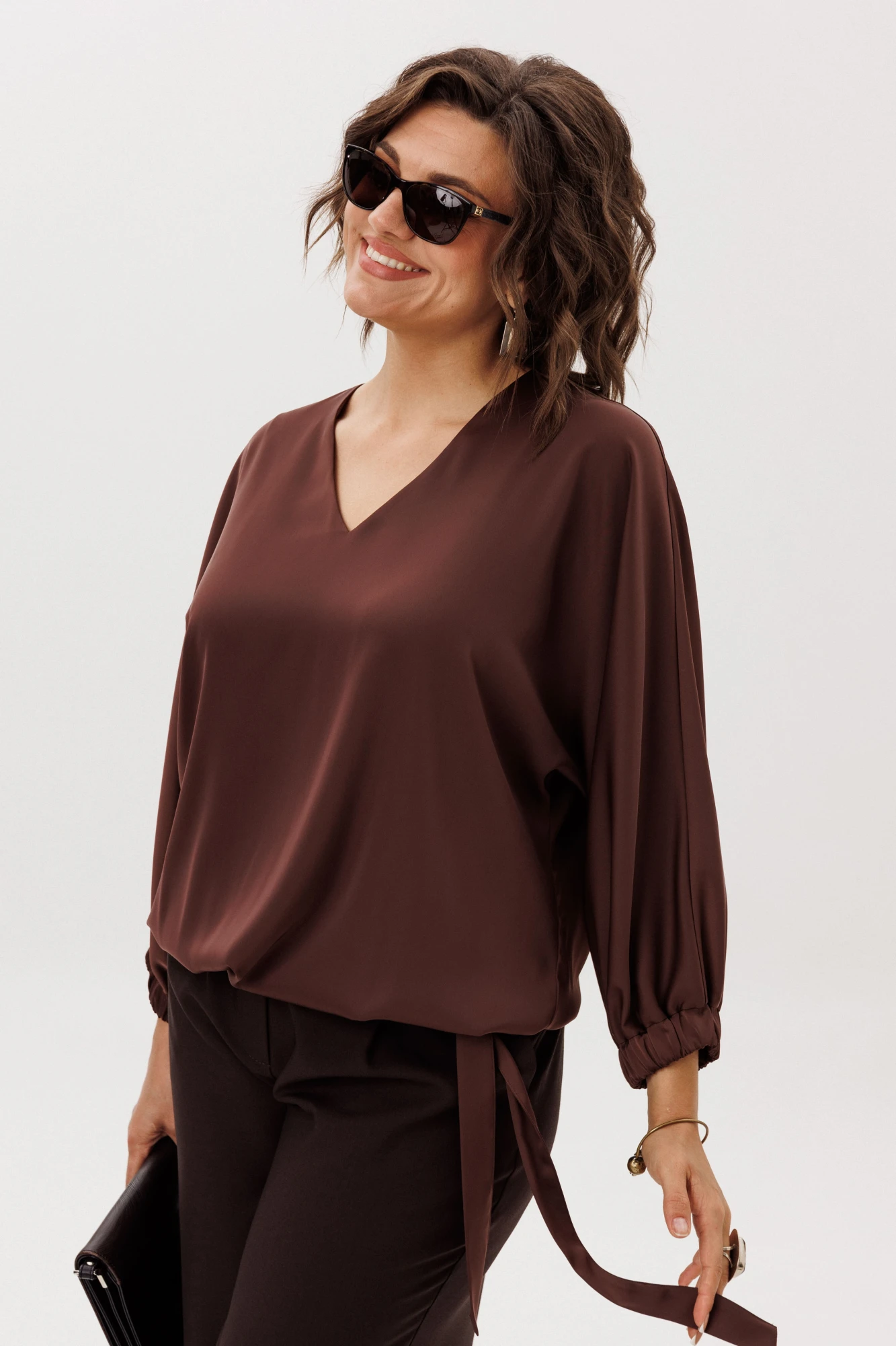 Именно это сочетание роскошной ткани, безупречного кроя и продуманных деталей делает блузу истинной жемчужиной гардероба. Она станет верной спутницей в будни, даря комфорт в офисе, и безупречно дополнит ваш образ в день особенный, когда хочется чувствовать себя сияющей и неотразимой.