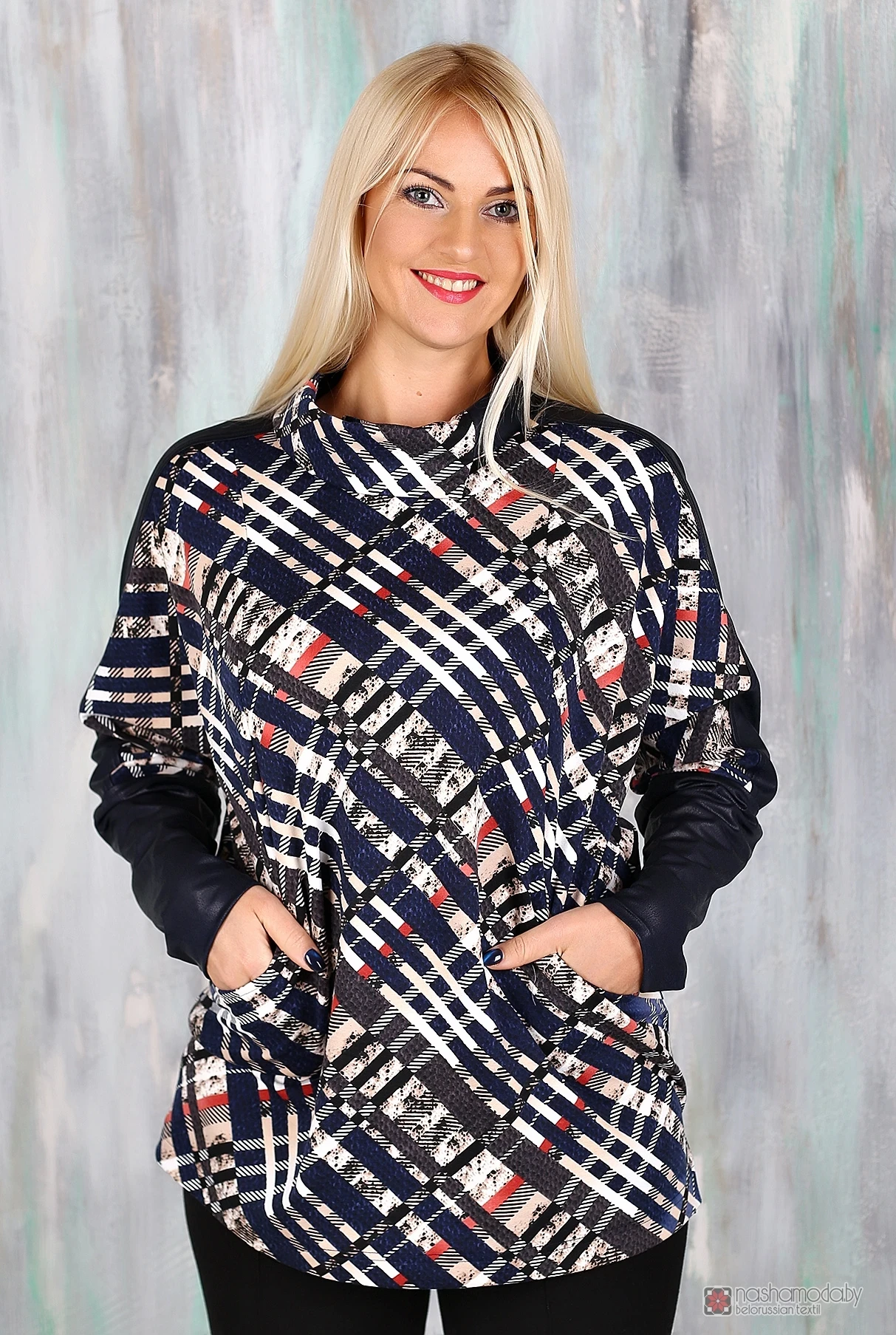 Блузка свободного силуэта выполненная из трикотажного полотна с элементами перфорация кожи на рукавах. Сочетание контраста модных цветов сезона делает блузку запоминающейся. Отличный вариант на каждый день!