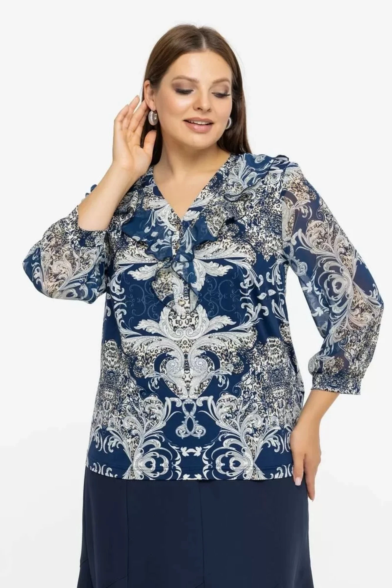 Легкая блузка выполнена из премиального нежнейшего материала, что придает изделию лоск и нарядный дорогой вид. V-образный вырез украшен рюшей из шифона. Рукава 7/8 втачные. Блуза способна выделить свою обладательницу, создать приподнятое настроение.
