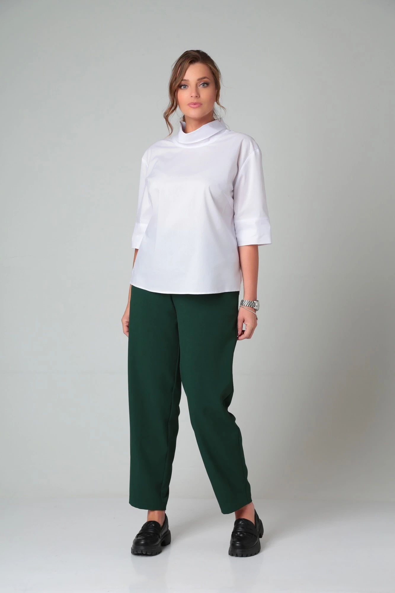 Блузка женская из хлопковой ткани, свободного кроя, отдельное внимание заслуживает двойной ворот хомут. Модель отлично комбинируется с брюками и юбками, предавая образу делового или вечернего стиля.