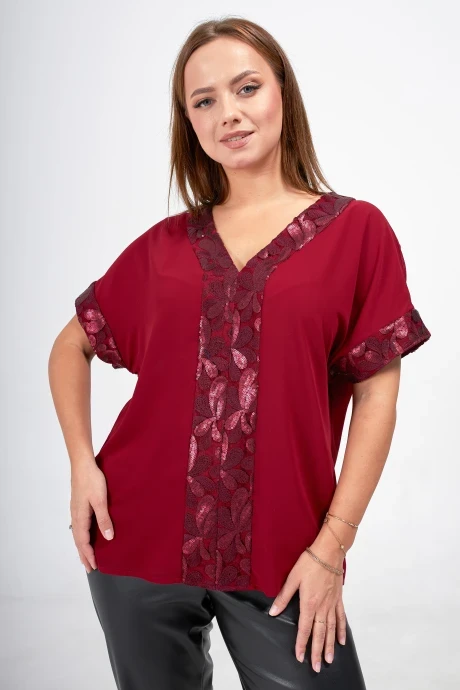 "Стильная блузка больших размеров станет прекрасным дополнением вашего гардероба! Эта элегантная блузка выполнена из двухслойного шифона, что придаёт ей легкость и воздушность. Свободный крой обеспечивает комфорт и свободу движений. Короткий рукав придает блузке легкость и удобство.