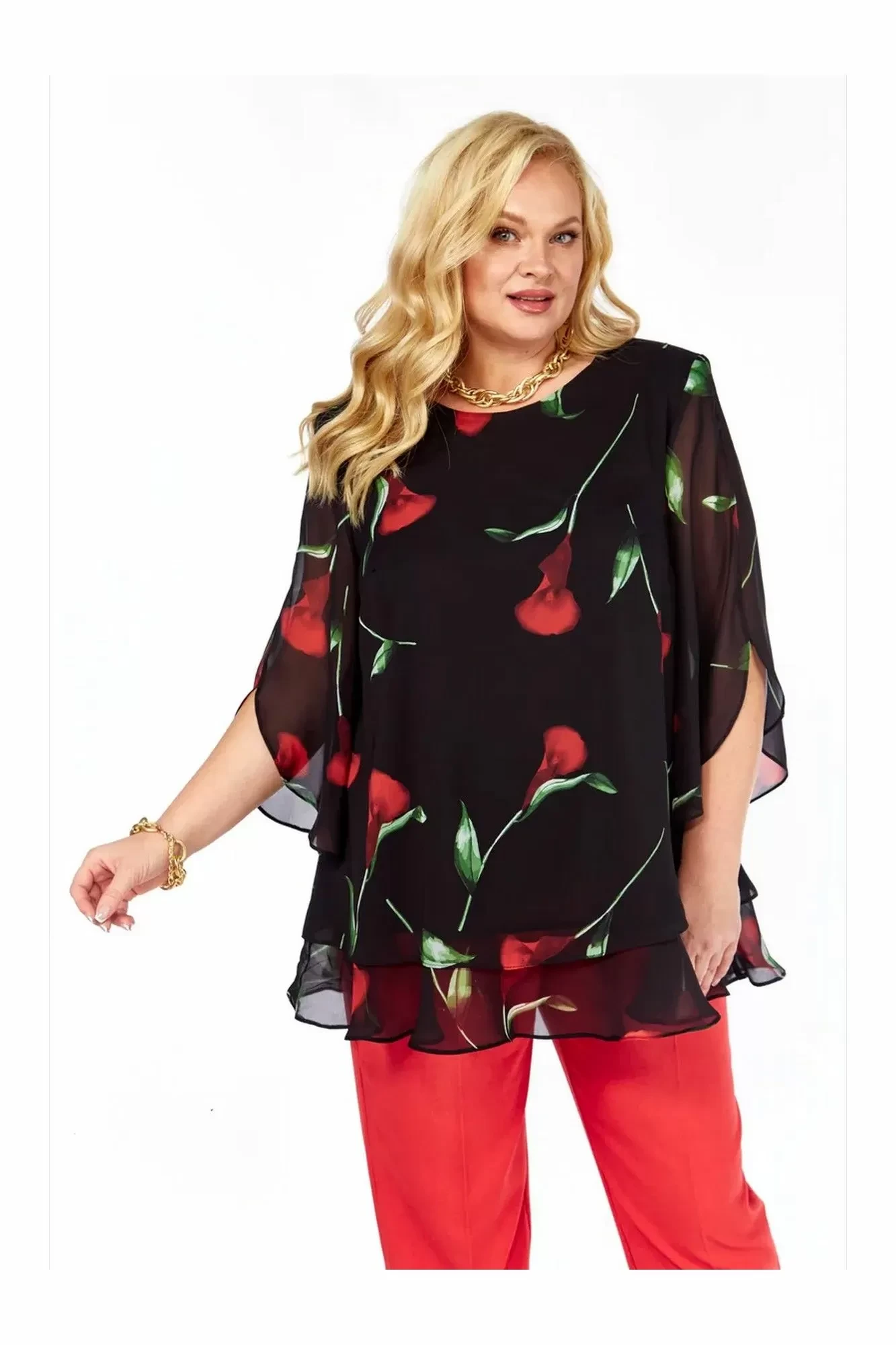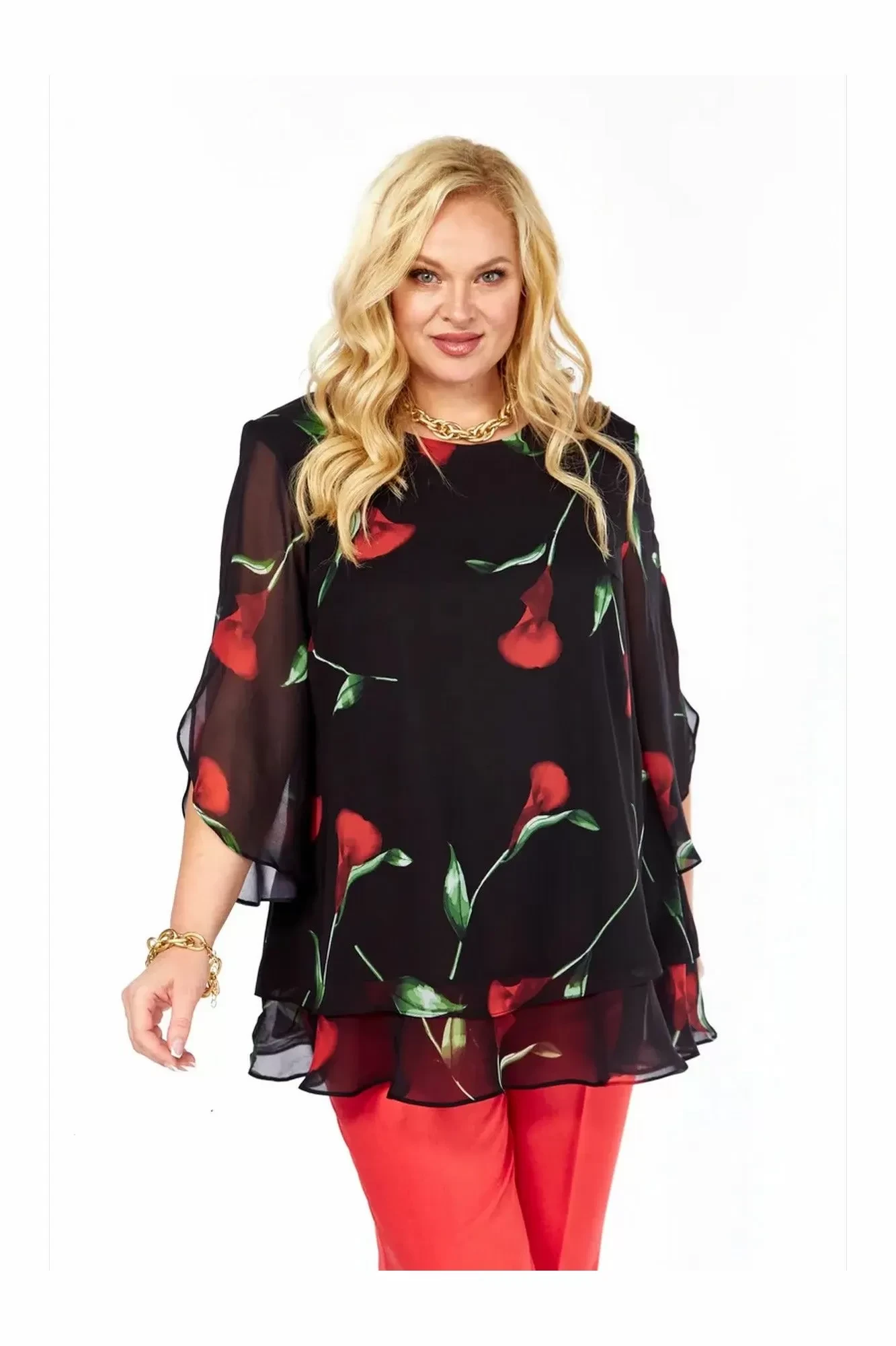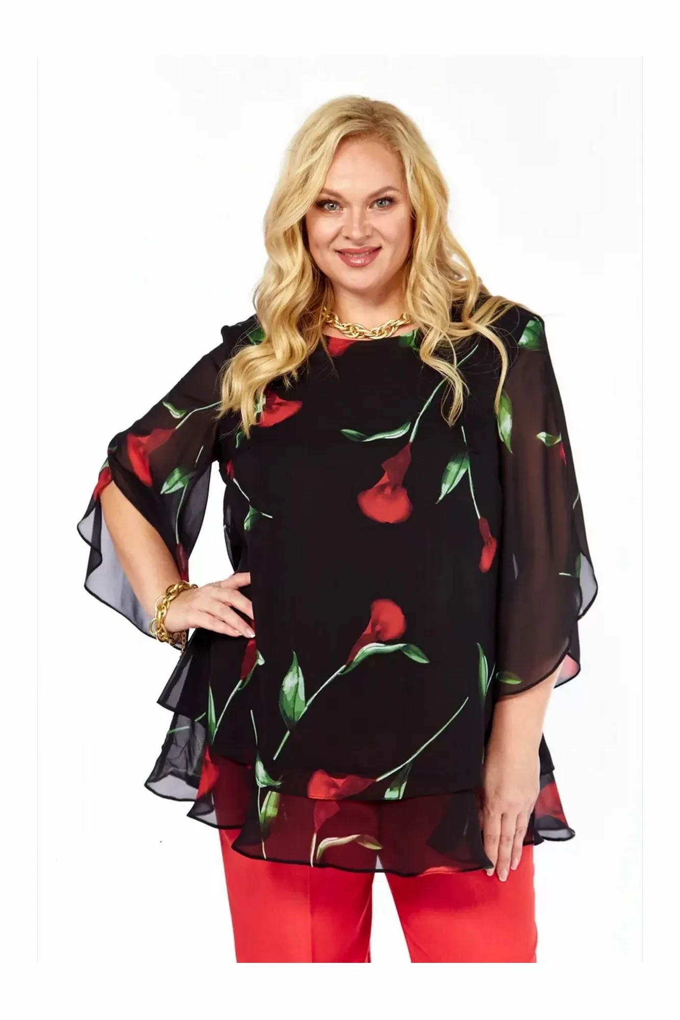 Блузка Элль-стиль 2213/11 а черный принт цветы