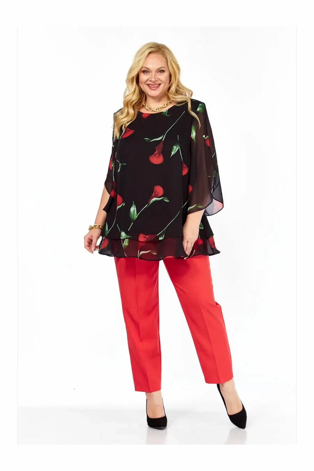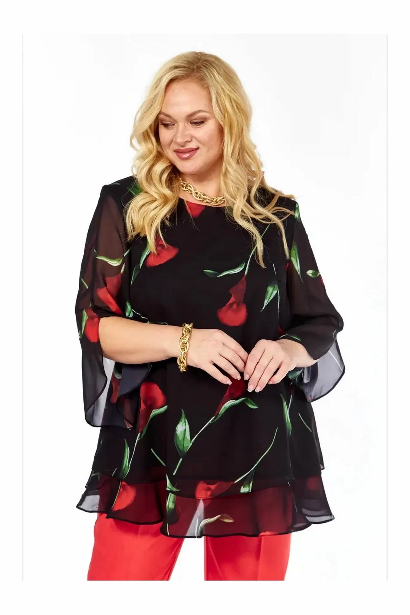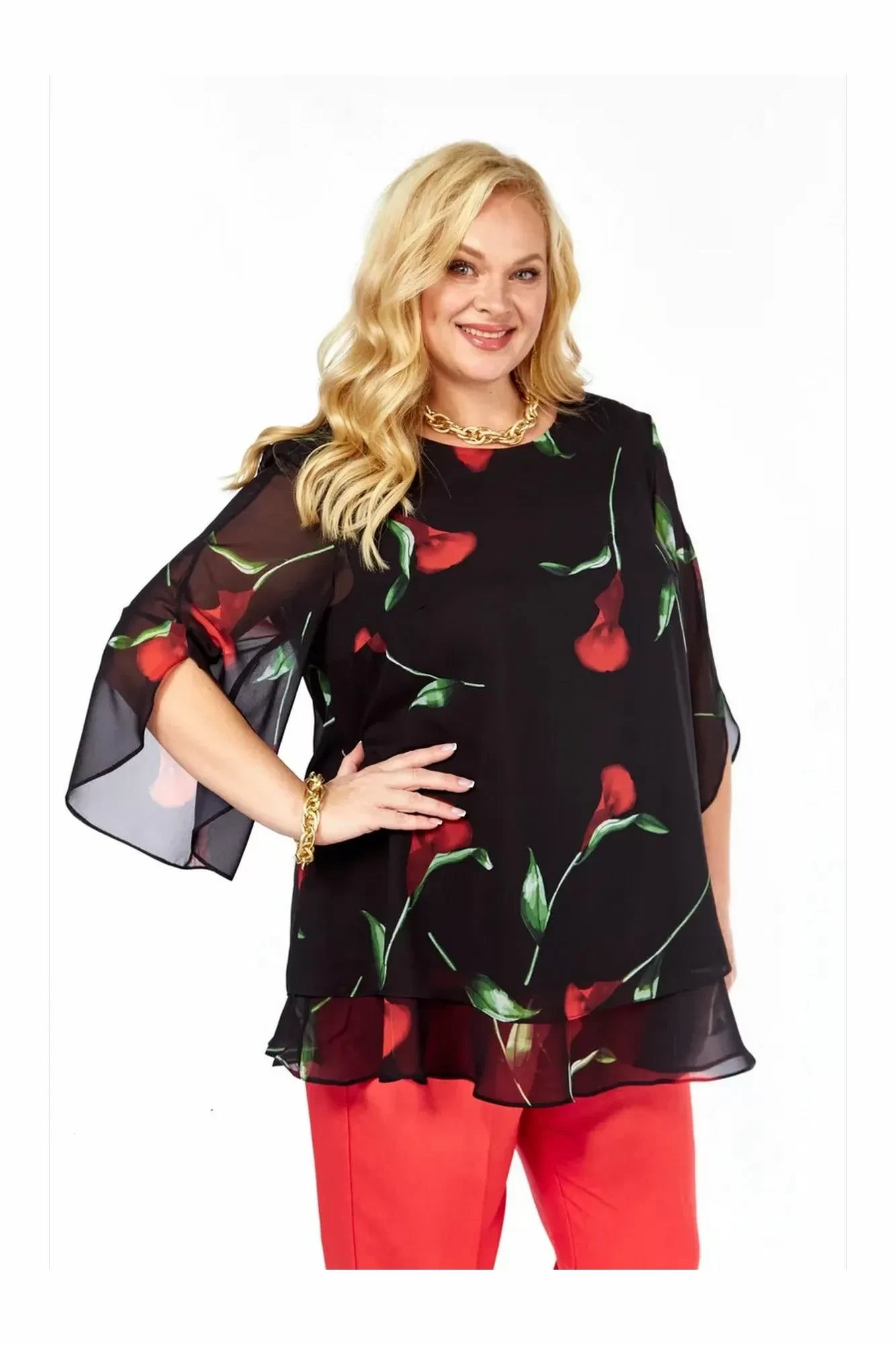 Блузка Элль-стиль 2213/11 а черный принт цветы