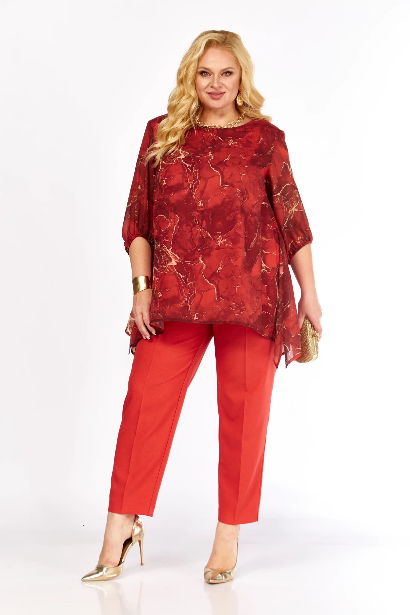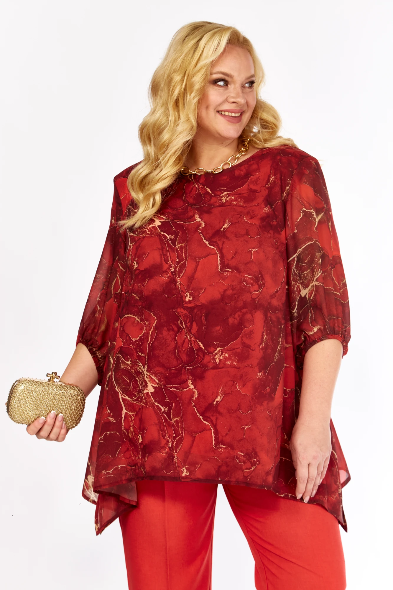 Блуза сводного кроя из принтованного шифона, что придает уникальность стилю своими красками. На полочке нагрудные вытачки, вырез горловины аккуратной округлой формы. Рукав втачной, свободный, низ присборен.