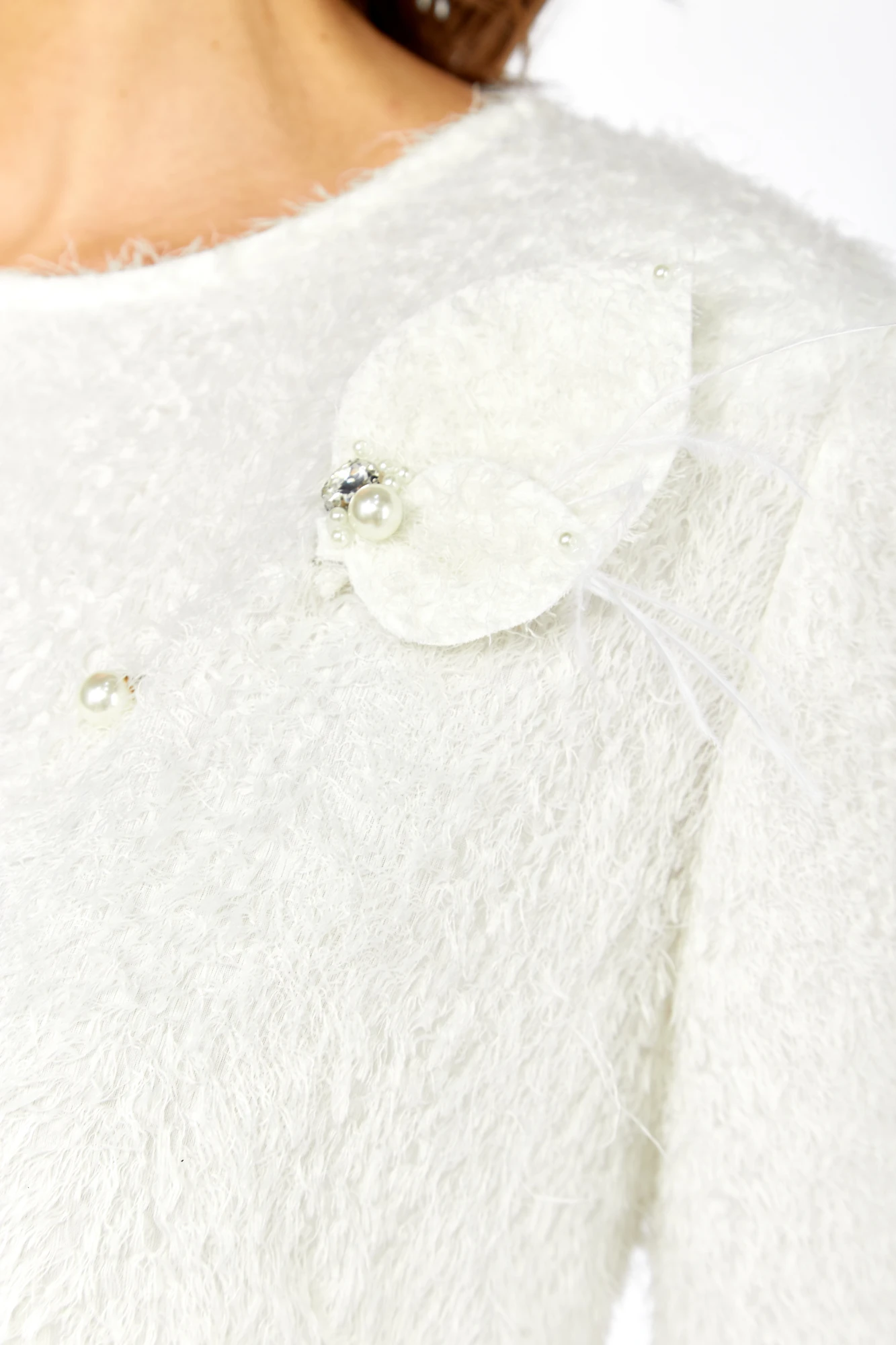 Праздничная элегантная блузка полуприлегающего силуэта, выглядит эффектно, прекрасно подойдет для мероприятий. Горловина аккуратной округлой формы. Рукав втачной, свободный с фантазийным решение, длина 7/8. Декоративным элементом является съемная дизайнерская брошь. Средний шов спинки вверху переходит в застежку на 6 навесных петель, пуговиц. В боковых швах предусмотрены разрезы.