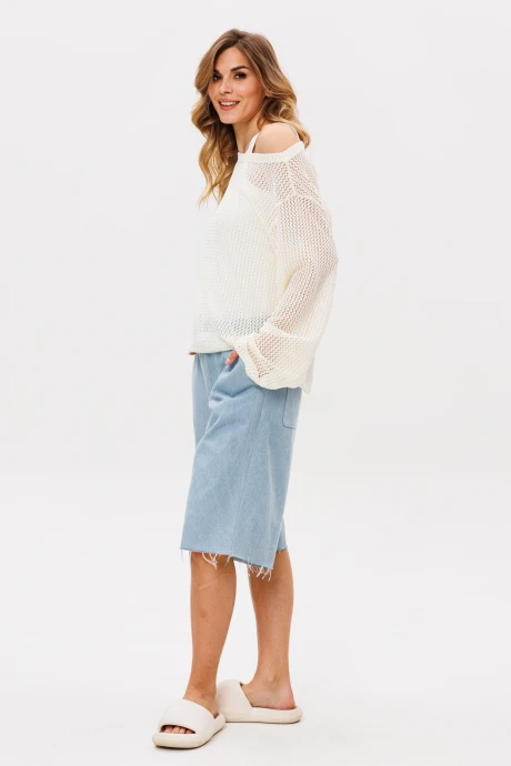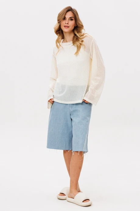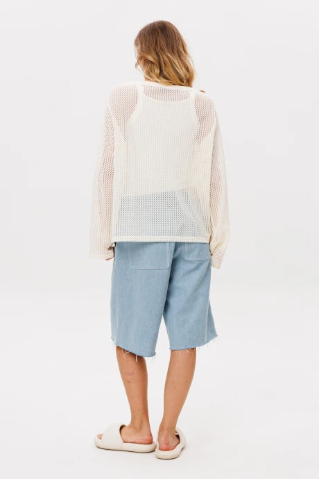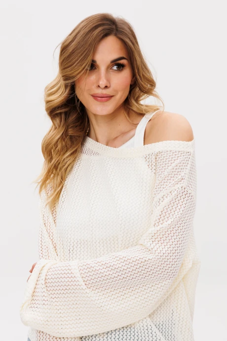 Блузка выполнена из сетки с рисунком. Блузка прямого силуэта, длиной выше линии бедер. Перед и спинка цельные. Горловина переда и спинка формы "лодочка". Плечевой шов удлинен. Рукав одношовный широкий. Горловина обработана окантовкой из основной ткани.Топ в комплект не входит, можно приобрести отдельно арт. 2855.
