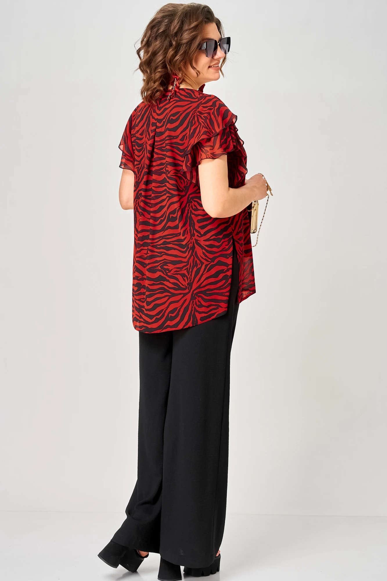 Блузка женская элегантная легкая стильная нарядная повседневная полуприлегающего силуэта на подкладке, выполнена из легкого шифона с красивым притном. Вырез горловины V-образный на обтачке. Рукав втачной с двойным воланом. что придает легкости и стиля изделию. Низ блузы фигурный, в боковых швах обработаны разрезы. По спинке встречная складка.