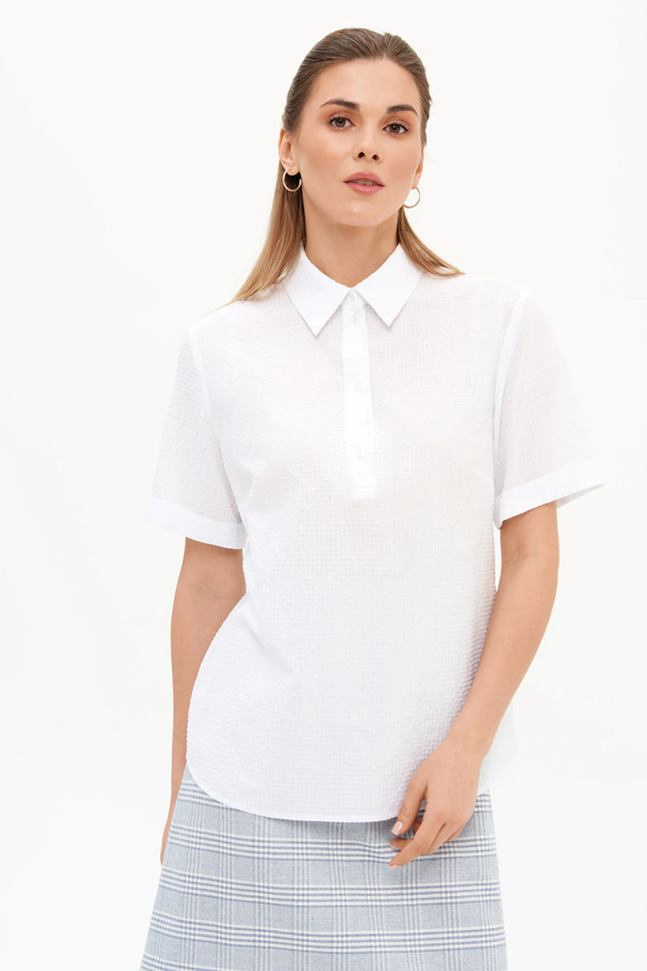 Блузка женская от бренда FRIDAY by NELVA - это идеальный выбор для женщин, ценящих комфорт и стиль. Данная модель выполнена из приятного смесового полотна с добавлением хлопка, что обеспечивает комфорт и практичность. Элегантная блузка свободного силуэта с отложным воротником-стойкой. Центральная застежка выполнена в виде пуговиц. Объемные короткие рукава, сосборены на манжеты с разрезом и застежкой на пуговицы придадут образу легкость и утонченность. Спинка и перед имеют плавные закругления по низу. Универсальный дизайн позволяет создавать стильные образы для отдыха, романтических встреч, рабочих будней и учебы.