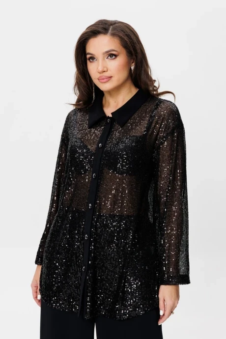 Блуза свободного силуэта, воротник рубашечного типа (без стойки), рукав втачной спущенный на манжете по низу. Застежка на петли-пуговицы по переду. Блуза без подкладки.