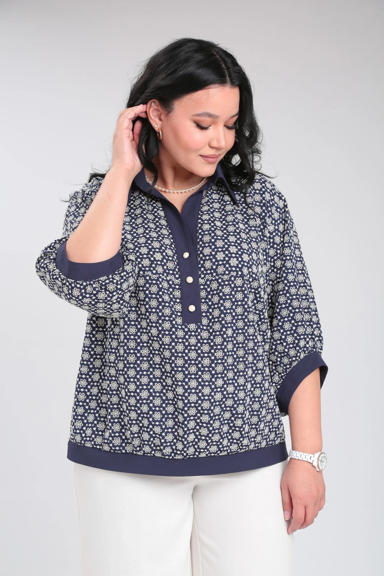 Блузон из хлопкового шитья свободного силуэта, воротник рубашечного типа на стойке. Вырез декоративная планка на пуговицах, рукав втачной со сборкой на фигурной манжете. Низ на планке с легкой сборкой. Блузка будет прекрасно смотреться в комплекте с брюками, а так же с юбкой, каждый раз помогая Вам создавать новый неповторимый образ. Разрезы по бокам делают рубашку для женщин незаменимой вещью в любом гардеробе. Приятная ткань, современный стиль, интересный дизайн, свободный покрой, широкий размерный ряд.
