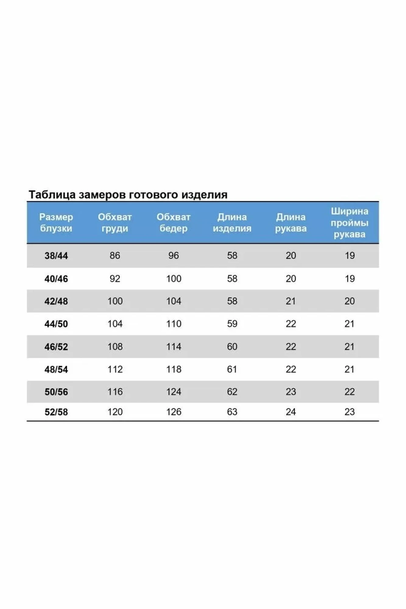 Таблица размеров