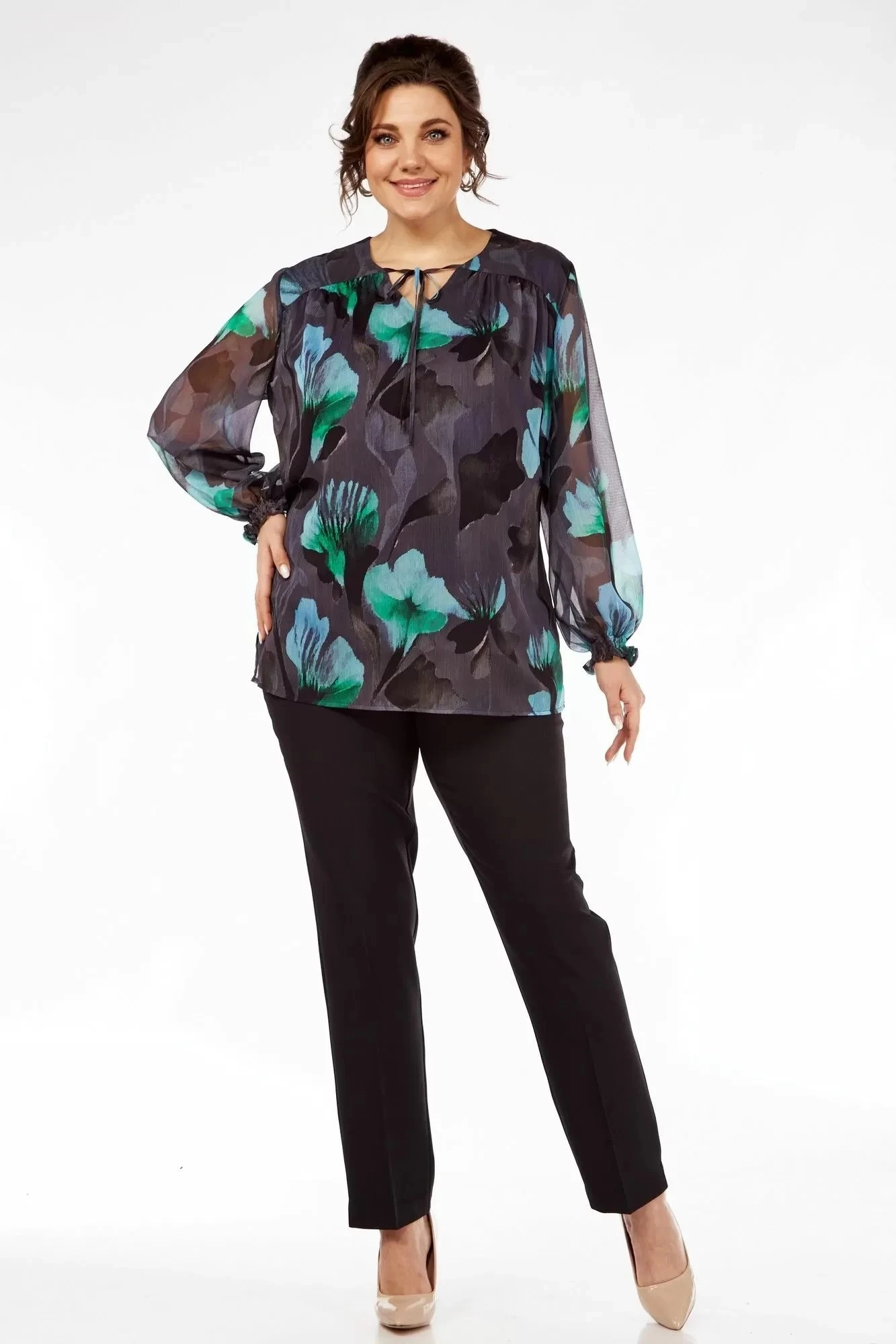 Воздушная блуза, позволит чувствовать себя ярко и уверенно, выполнена из шифона на подкладке. Изделие свободного кроя, на полочке мягкие складки, придают легкость и комфорт. Вырез горловины V-образной формы. Рукав втачной, свободный, низ присборен.
