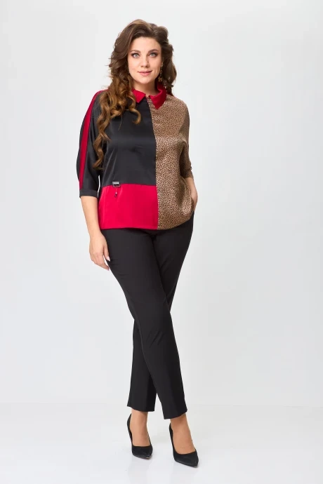 Блузка SolomeaLux 968D черный с красным+леопард