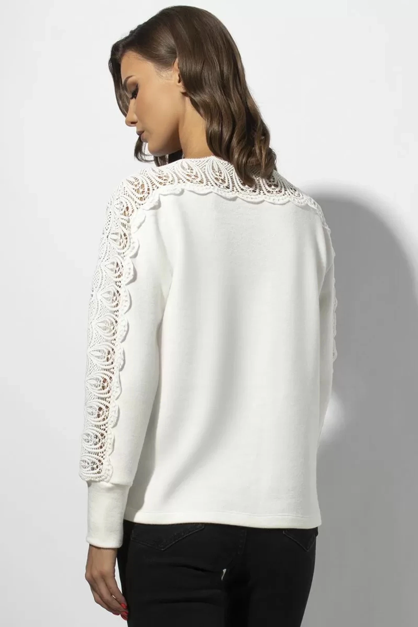 Отделочным элементом блузки является кружево.
