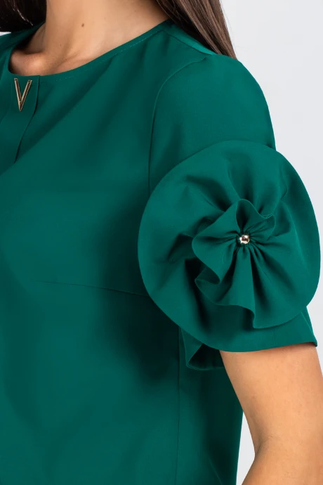 Рукав втачной с отделочным элементом в виде цветка с пуговицей в его центре.