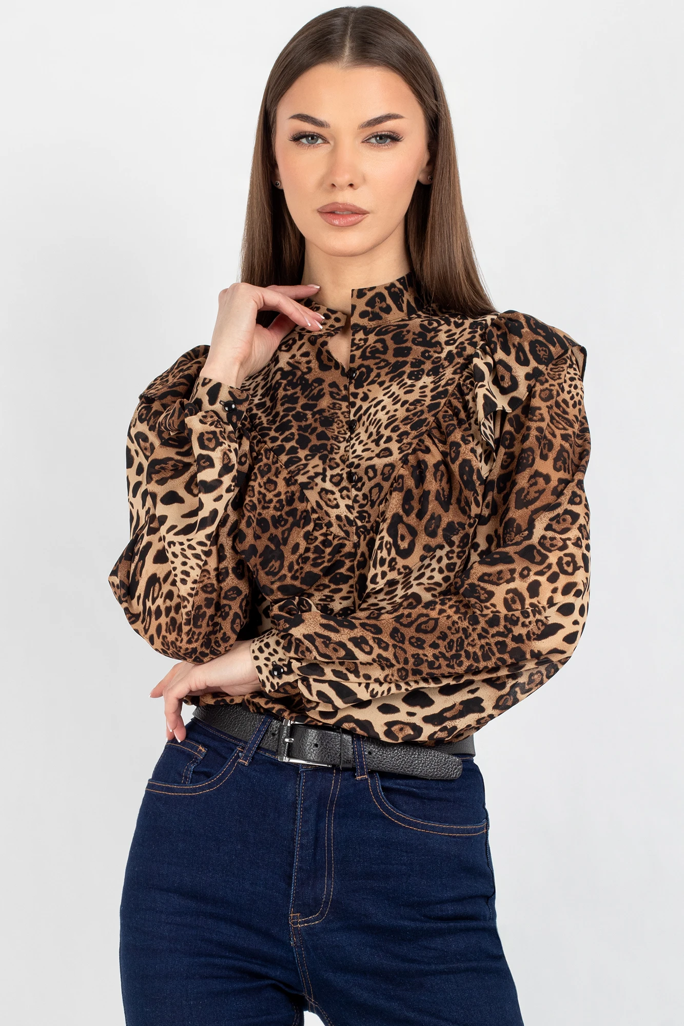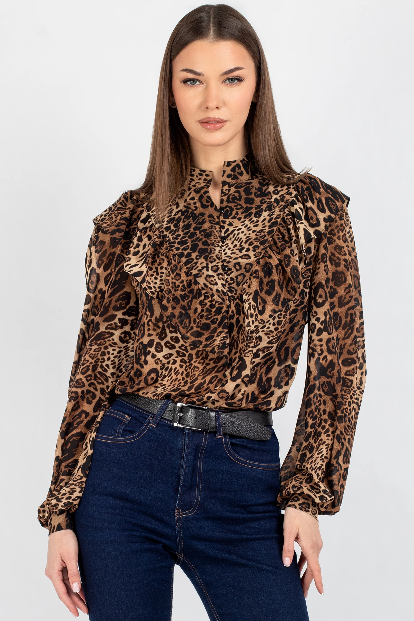 Женская блузка с леопардовым принтом и рюшами