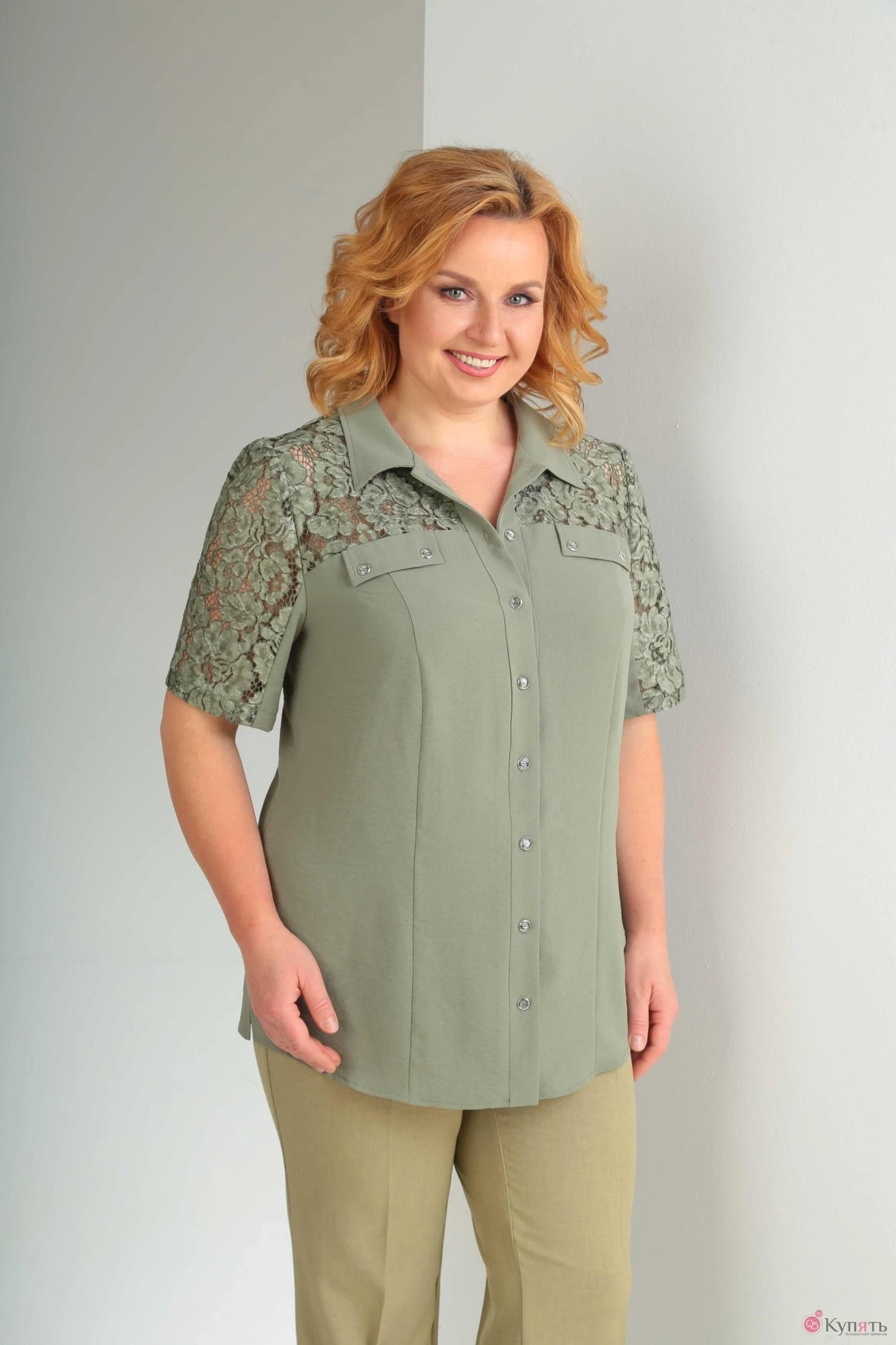 Блуза из текстильной блузочной ткани комбинированной с гипюром,из которого выполнена кокетка и верхняя часть рукава.На груди декоративные клапаны с пуговицами. Блуза на застежке из пуговиц. Низ слегка закруглен к боковым швам, в которых сделаны разрезы длиной 12 см.