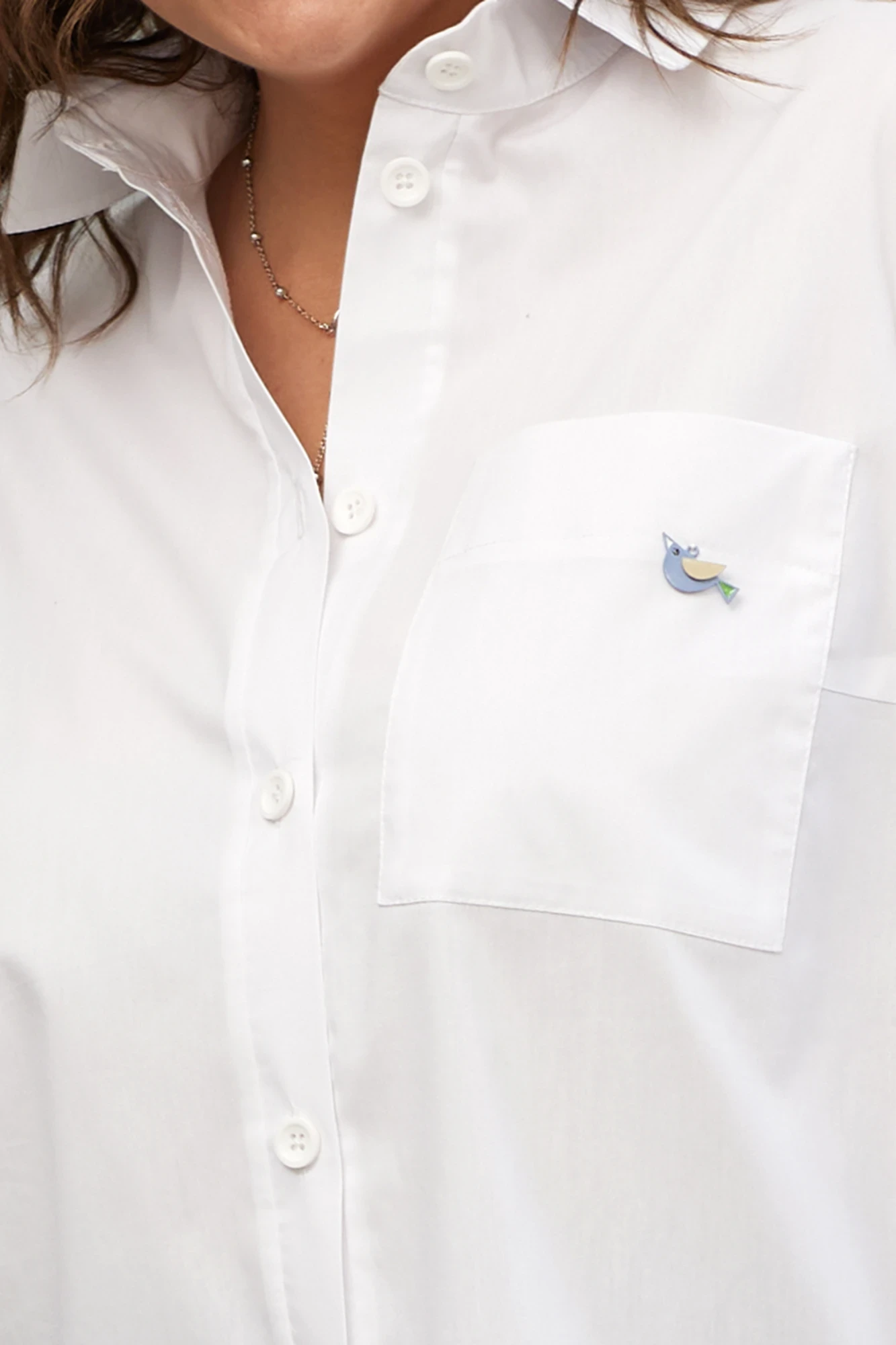 Перед имеет застёжку на петли-пуговицы, контрастного цвета. Воротник втачной, рубашечного типа, низ рукава обработан притачной манжетой. На полочке в районе нагрудной вытачки расположен накладной карман, декорированный пришивным медальоном. Не упустите возможность обновить свой гардероб и привлечь восхищённые взгляды окружающих!