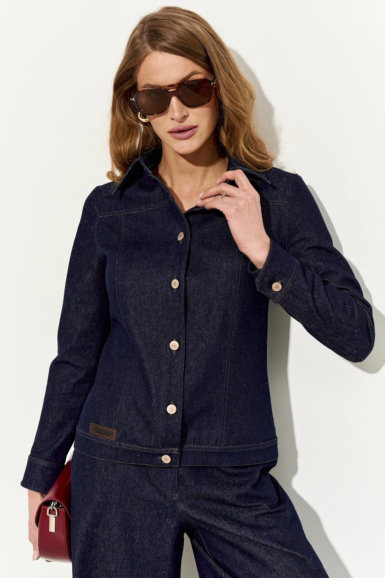 Классическая джинсовая рубашка прилегающего силуэта выполнена из натурального хлопкового джинса глубокого синего цвета; рукава втачные с манжетами; воротник рубашечный; застежка на петли и пуговицы. Рубашка полностью соответсвует заявленному размеру. Пожалуйста, пользуйтесь таблицей замеров готового изделия, чтобы подобрать идеальный размер.