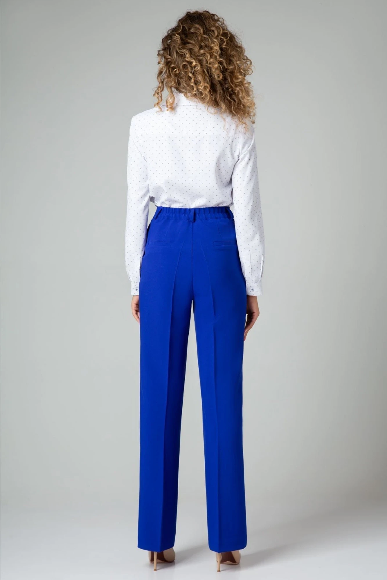Рубашка прямого силуэта, выполнена из полотна на основе хлопка с мелким рисунком. Отложной воротник-стойка, центральная застежка на декоративные пуговицы. Втачные рукава с заложенными в шов манжеты симметричными складками, застегиваются на пуговицу. Спинка с кокеткой. Передние полочки и спинка с плавным закруглением по низу.