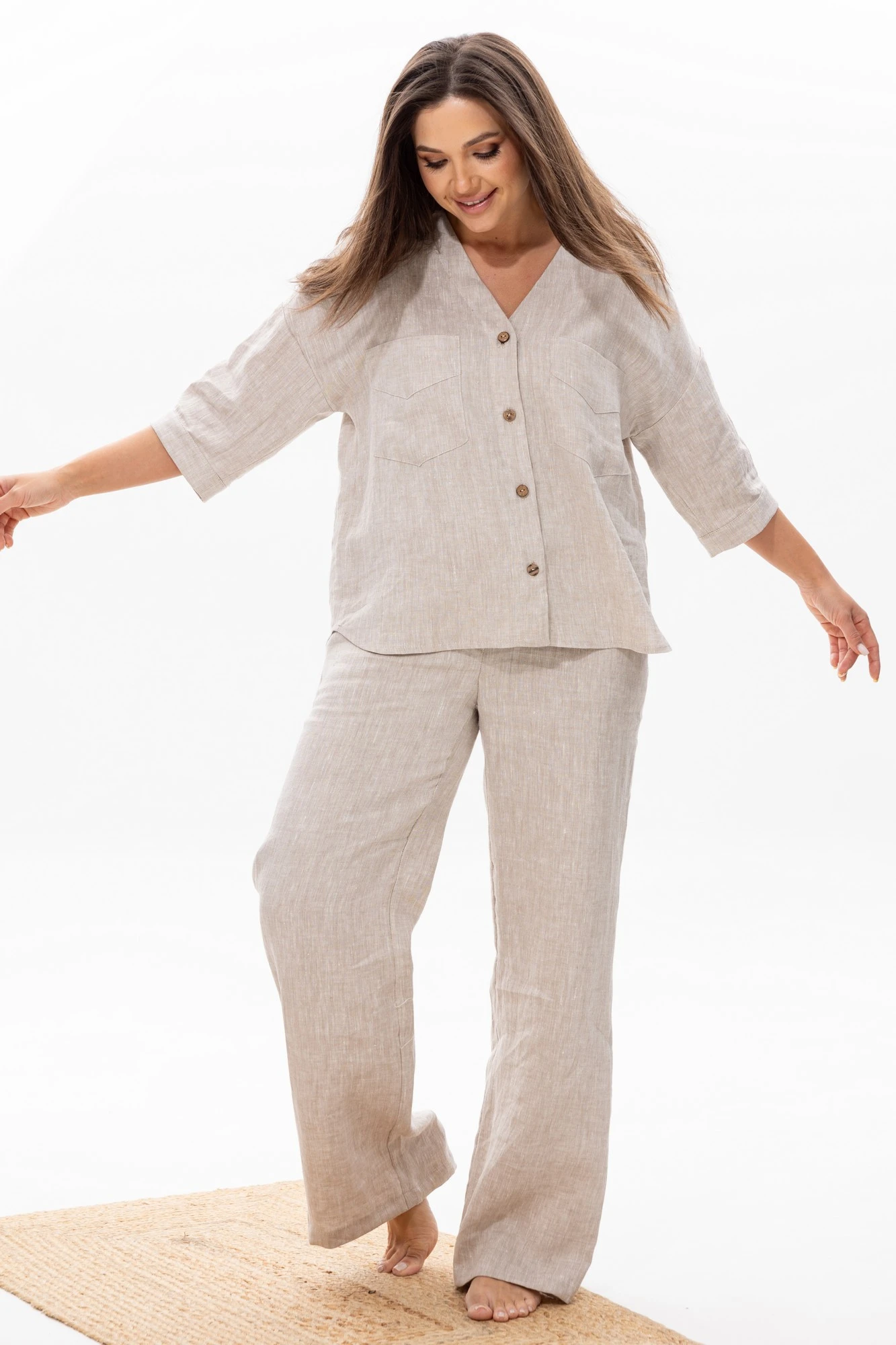 Рубашка из натуральной ткани для повседневного использования. Будет идеально смотреться с нашими льняными брюками брюками 2086 (на фото), также оба изделия можно приобрести комплектом 3137."