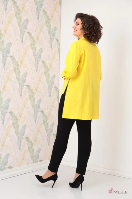Рубашка женская полуприлегающего силуэта. По переду блузки нагрудные выточки. Смещенный боковой шов обработан декоративной железной молнией, по переду обработаны нагрудные накладные карманы с клапанами, где отделкой служит железная молния. Планка обработана на петли-пуговицы. Воротник рубашечного типа. Рукав втачной с манжетой на 3 пуговицы. Спинка цельная. Длина изделия по спинке намного длиннее, чем по переду.