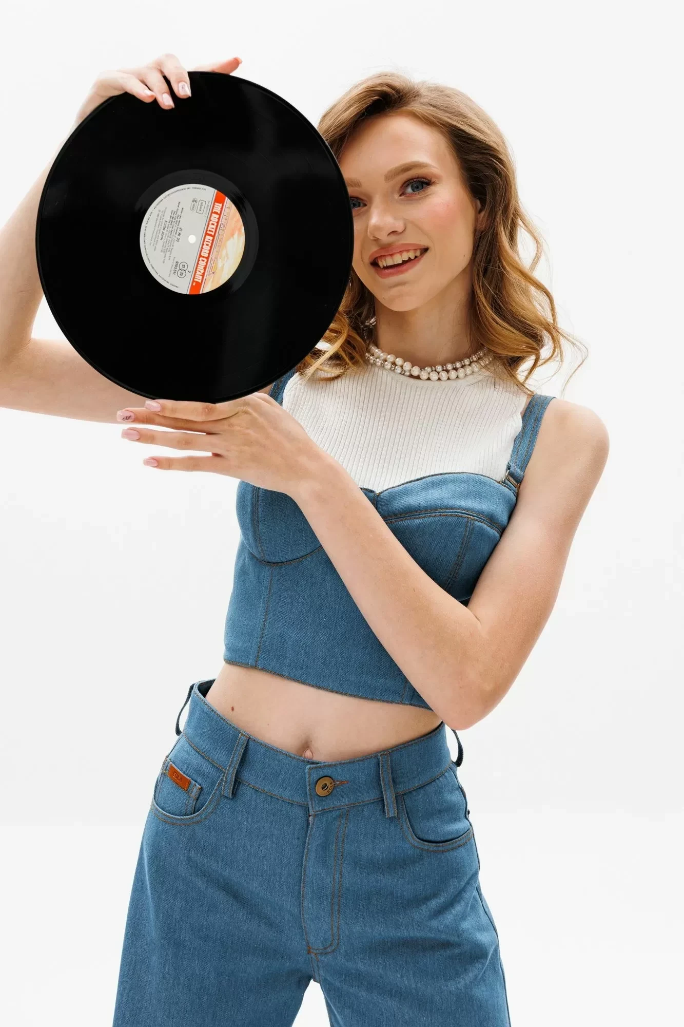 Топ выполнен из джинса, в виде корсета. Спереди два рельефа, в них вставлен регилин. На спинке между рельефами эластичная вставка для лучшей регулировки по обьему. В левом боковом шве застежка на молнию. Топ на подкладке и со съемными бретелями.