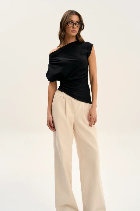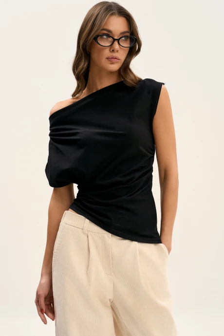 Топ с вырезом лодочкой без рукавов, ассиметричным низом и сборками - это ультрамодная вещь для вашего гардероба!