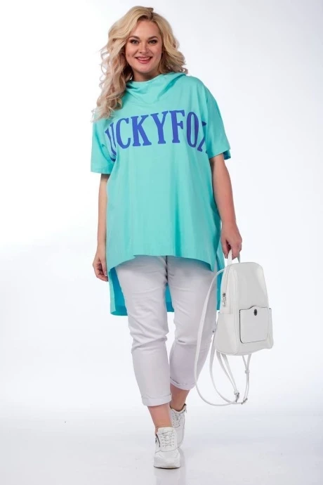 Туника женская прямого силуэта из трикотажного полотна. Рукав цельнокроенный. Горловина изделия оформлена капюшоном. По переду печать. На спине накладной карман с клапанами и декоративной тесьмой. Спинка удлиненная. По боковым швам выполнены разрезы.