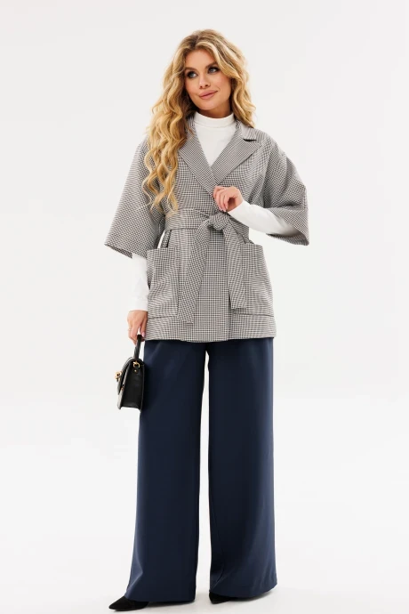 Брюки женские,свободного силуэта,на поясе со шлевками.Застежка на молнию и пуговицу.По переду заложены складки.По бокам действующие угловые карманы.