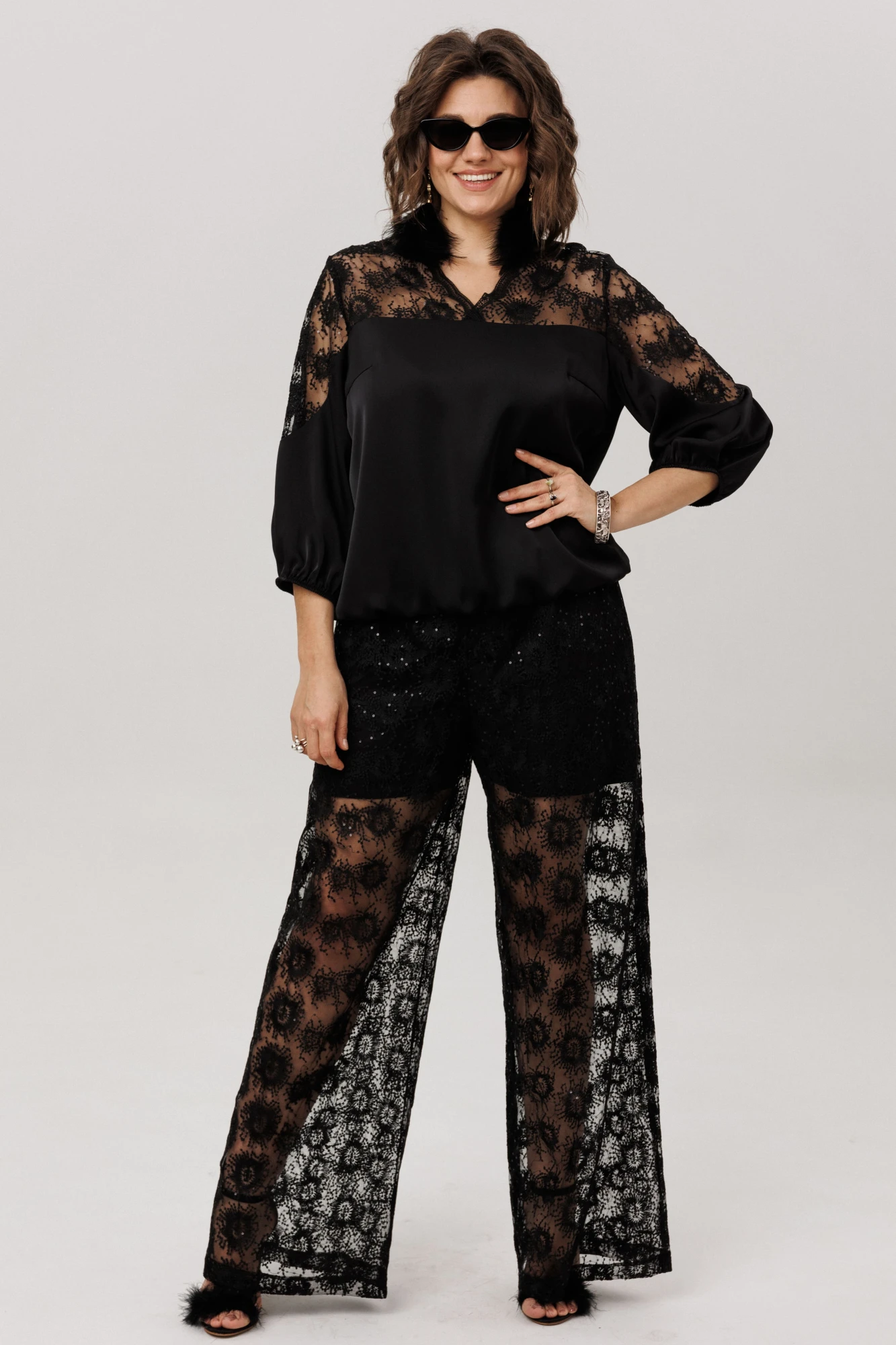 Размер 48: ОТ (резинка растянута) - 96; ОБ-110; ДИ брюк - 109; ДИ шорт - 36; ширина по низу - 64;