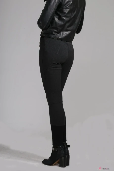 Брюки из двух видов ткани. Пояс на резинке и низ брюк выполнены из трикотажного полотна. Брюки с карманами на металлической молнии спереди.