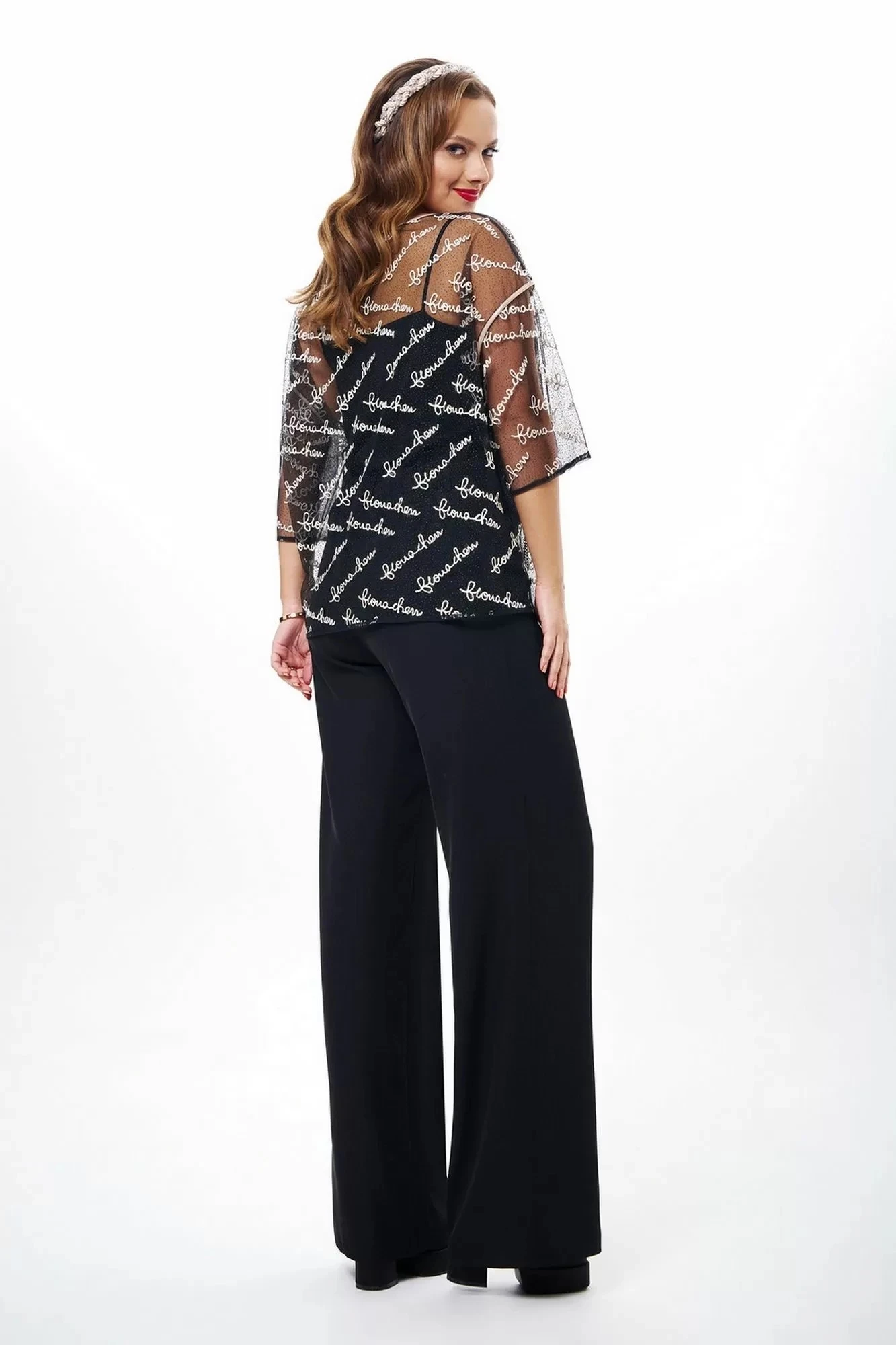 Брюки палаццо из струящегося крепа, с удобными боковыми карманами и резинкой в поясе по спинке. На шлевке - съемная авторская подвеска с мерцающими сердечками.