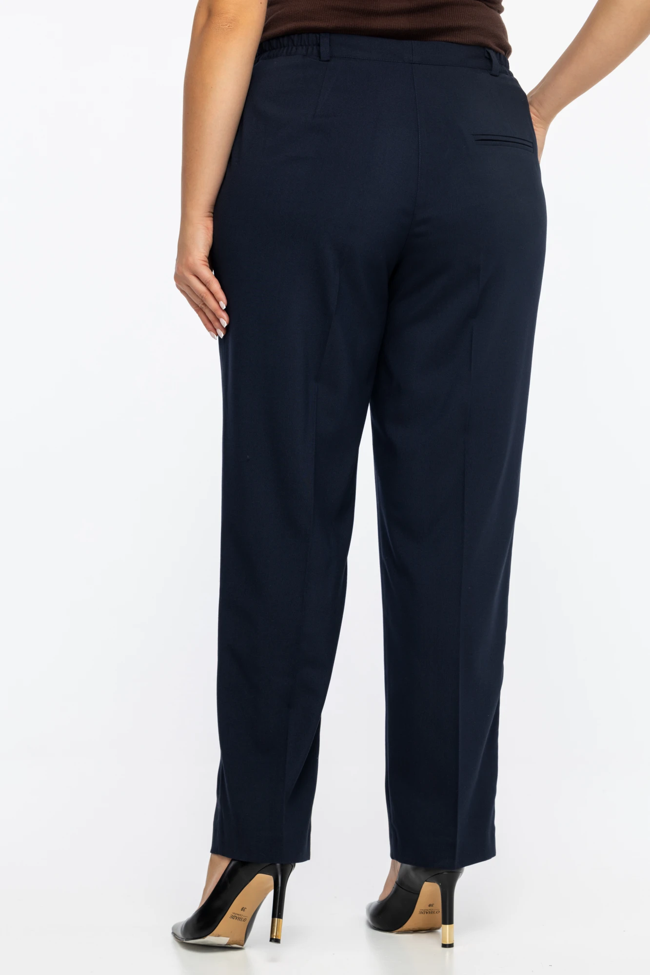 Классические женские брюки с резинкой на талии. Брюки прекрасно садятся на фигуре, не стесняют движений, не перетягивают талию, а также позволяют визуально скорректировать проблемные зоны фигуры