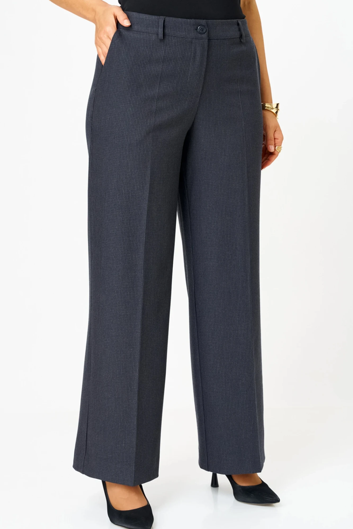 Брюки-палаццо, модель идеального кроя, создает изящный силуэт и невероятный комфорт. Скрытые карманы и фасон с высокой талией делают их одновременно стильными и практичными. Длина брюк от талии по боковому шву 103 см.