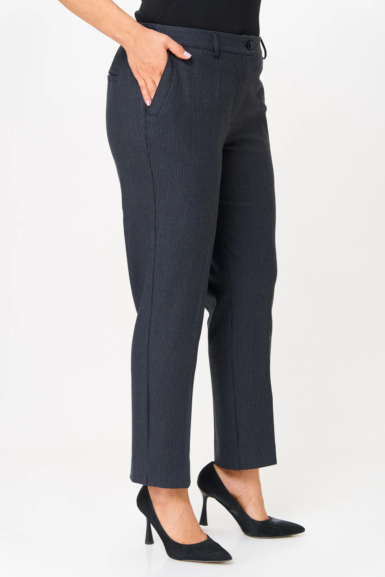 Идеальные брюки для холодного сезона.Прямой крой, плавно сужающийся к низу, и четкие стрелки создают элегантный силуэт. Плотная ткань согреет, а скрытая резинка по бокам обеспечит идеальную посадку без дискомфорта. Стильные разрезы по низу и аккуратная имитация карманов сзади завершают безупречный образ.Это не просто классические брюки, а усовершенствованная модель для холодного времени года. Длина брюк по боковому шву 97 см.