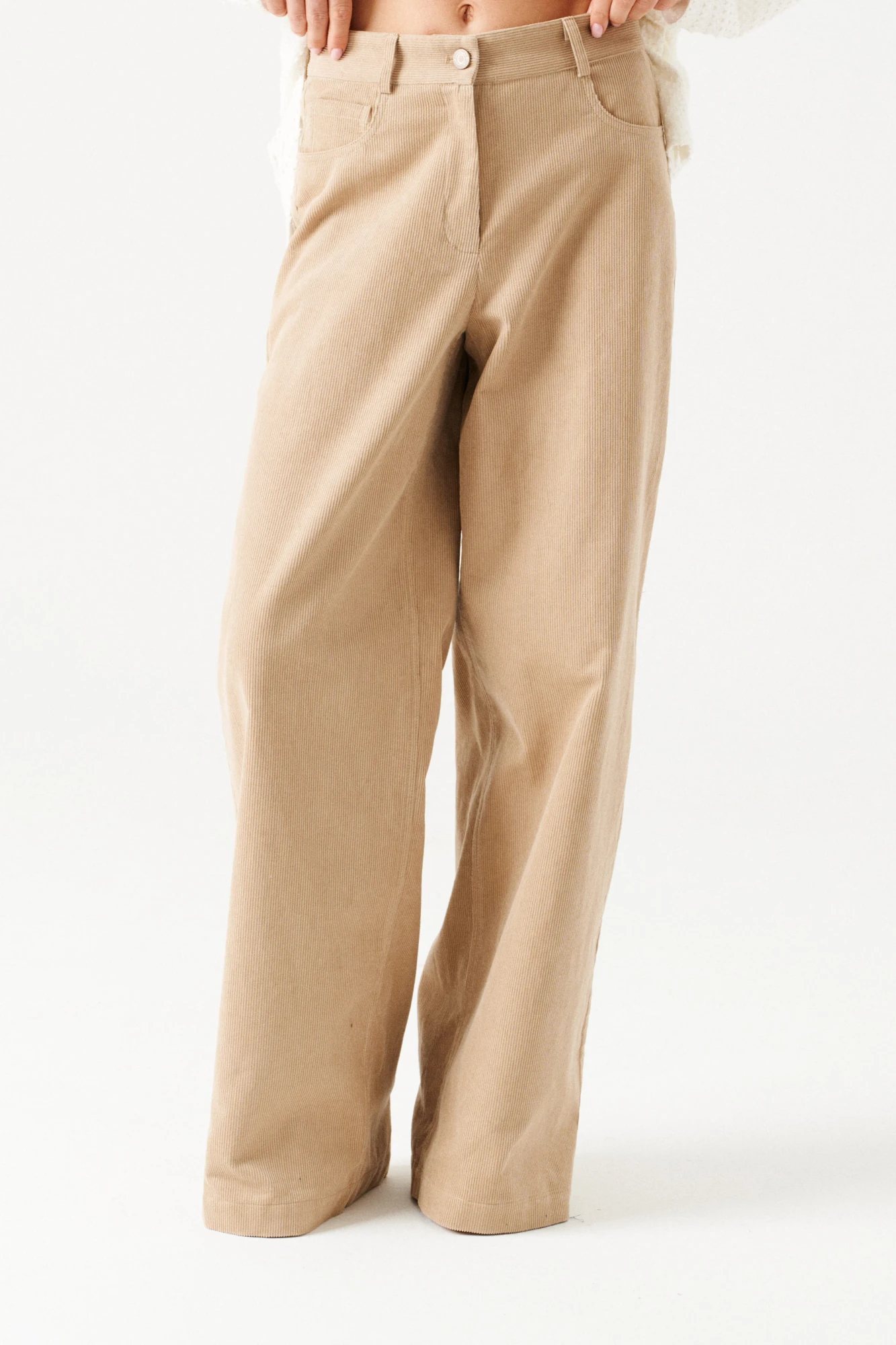 Брюки женские, прямые, расширенные книзу. По переду боковые карманы с отрезным бочком. По задним половинкам талиевые вытачки и накладные карманы. Застежка – гульфик на молнии. Пояс притачной со шлевками, застегивается на пуговицу.