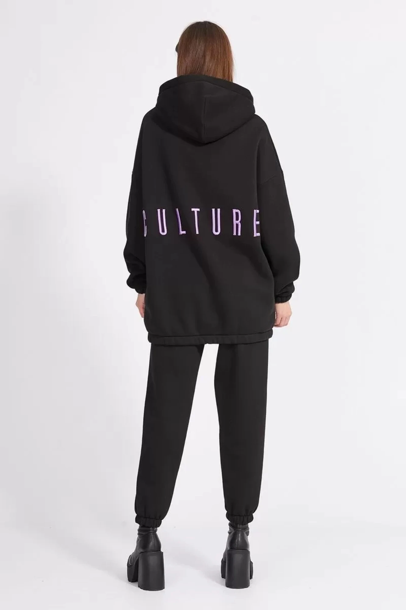 "Брюки выполнены из однотонного трикотажного полотна на флисе.Брюки на притачном поясе с эластичной тесьмой, заужены к низу. Спереди боковые карманы с наклонным входом фигурной формы. Низ брюк на манжете с эластичной тесьмой.