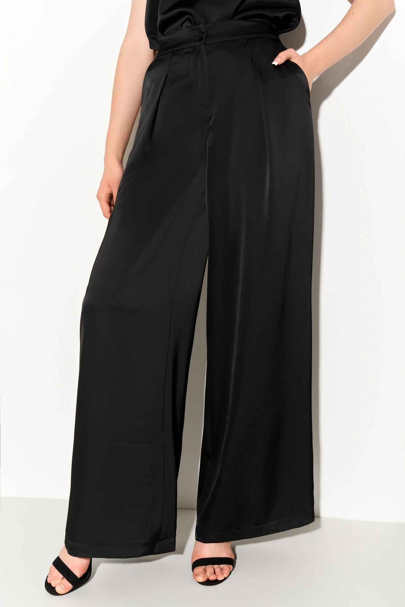 Классические брюки прямого силуэта с мягкими складками по переду и функциональными карманами в боковых швах; пояс притачной с эластичной тесьмой по спинке для лучшего прилегания; застежка на молнию, петлю и пуговицу. Брюки полностью соотвествует заявленному размеру. Пожалуйста, пользуйтесь таблицей замеров готового изделия. Уход: - при стирке в стиральной машине выбрать бережный либо деликатный режим;- температура воды не выше 40 градусов.