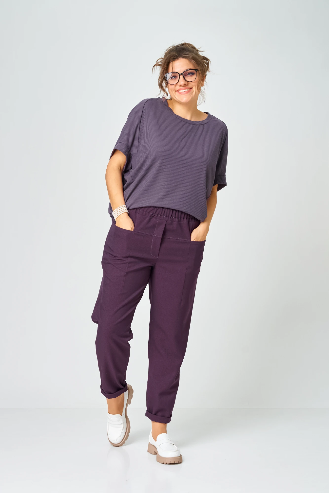 Эти стильные женские брюки выполнены в глубоким благородном оттенке тёмной сливы — цвете, который придаёт образу элегантность и легко сочетается как с базовыми, так и с яркими вещами гардероба.