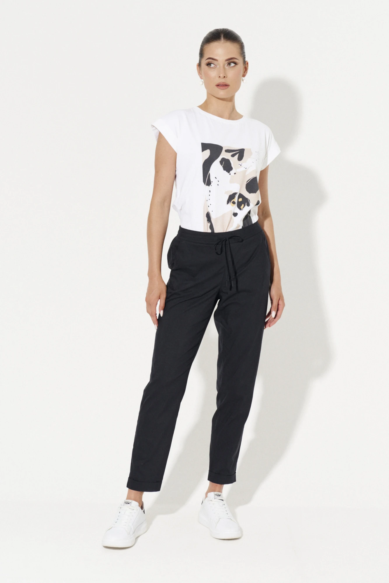 | 50 | Брюки: Высота посадки - 26.5см, Длина брюк без пояса - 96см, Длина по внутреннему шву - 72см, Ширина брючин сверху - 70см, Обхват брюк по низу - 34.5см, Ширина по бедрам - 54.5см, Ширина по талии - 42см; |