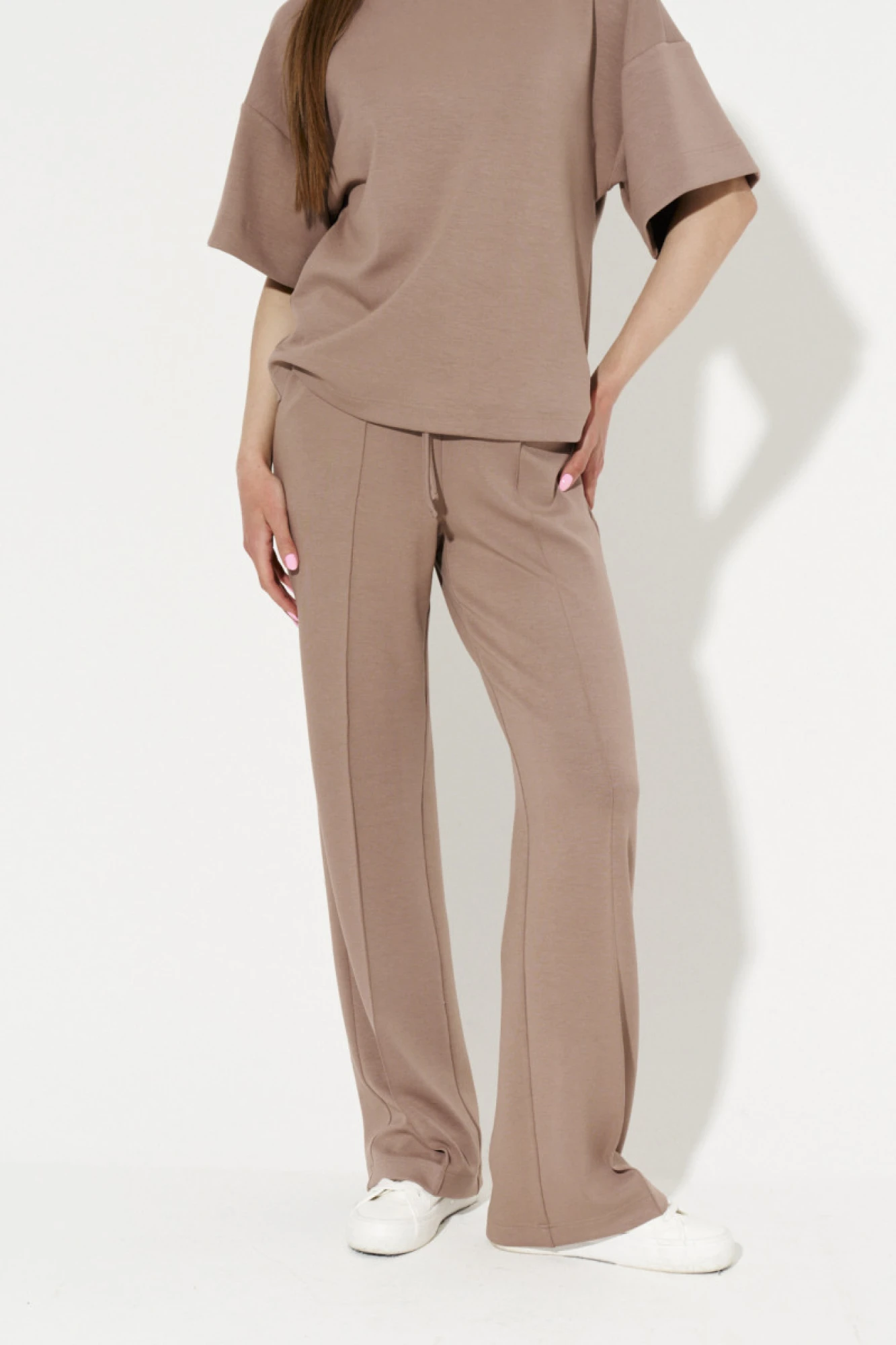 | 44 | Брюки: Высота посадки - 31см, Длина брюк с поясом - 113см, Длина по внутреннему шву - 81см, Ширина брючин сверху - 60см, Обхват брюк по низу - 52см, Ширина по бедрам - 50см, Ширина по талии - 32см; |